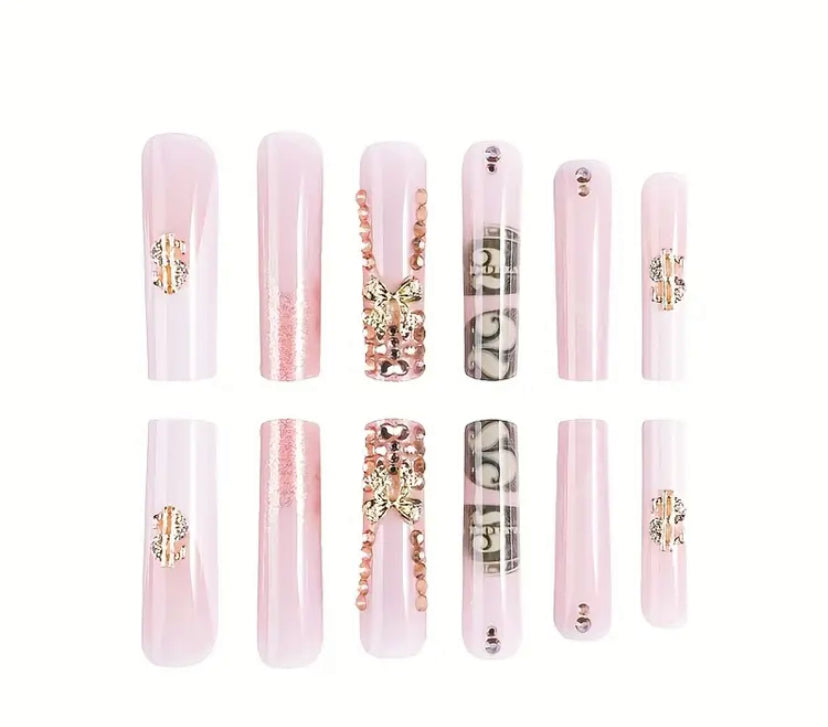 Models are wearing acrylic professionals nails. Press ons are made of acrylic resin, gel, or plastic.