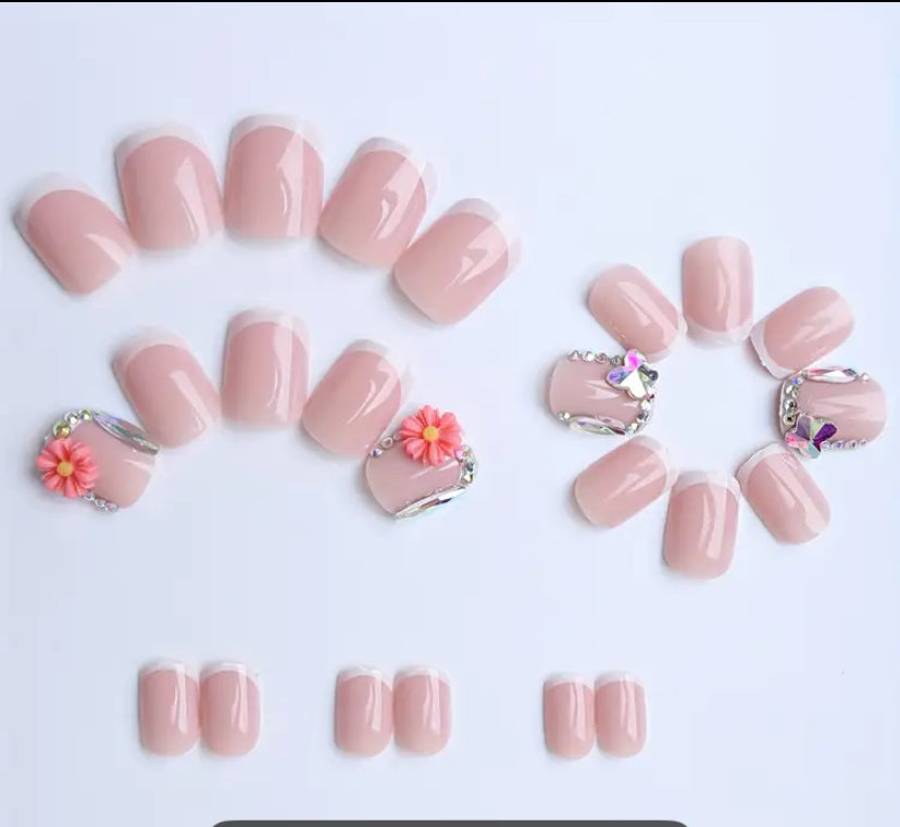 Models are wearing acrylic professionals nails. Press ons are made of acrylic resin, gel, or plastic.